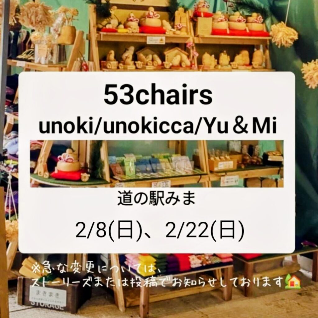 さて、53chairs、unoki、unokicca、Yu&Miの2月の出店予定をお知らせいたします。